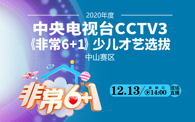 2020年度中央電視臺CCTV3《非常6+1》少兒才藝選拔中山賽區(qū)復賽將于12月13日下午2點舉行,中山日報報業(yè)集團·中山網(wǎng)全程直播,敬請關注!