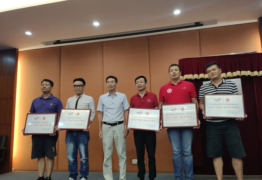 △領導和合作商家代表上臺揭牌,西區(qū)“雙擁”聯(lián)盟正式成立 會上,熊云峰分別為合作商家負責人頒授紀念牌匾。至此,中山市鎮(zhèn)區(qū)首個以退役軍人及其他優(yōu)撫對象為主要服務對象的組織正式成立。 △熊云峰委員向五家合作企業(yè)商家頒發(fā)紀念牌匾 據(jù)悉,為聯(lián)動社會力量,共同為轄區(qū)退役軍人獻愛心,西區(qū)發(fā)動轄區(qū)五家企業(yè)聯(lián)合成立“雙擁聯(lián)盟”,分別為轄區(qū)退役軍人定制專屬優(yōu)惠方案,凡符合條件的退役軍人憑證(軍官證、士兵證、退伍證等)消費即可享受相關優(yōu)惠。