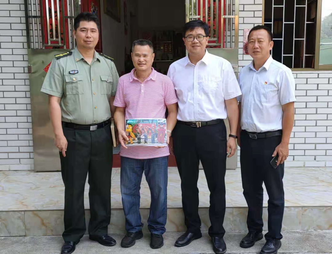 與黃曉聰親屬親切交談,介紹了黃曉聰在軍營的訓(xùn)練和生活情況 為了讓軍人放心,軍屬安心! 4月30日上午,神灣鎮(zhèn)黨委委員張寧溥會(huì)同鎮(zhèn)公共服務(wù)辦、武裝部、退役軍人服務(wù)中心、村社區(qū)等干部一行,先后前往現(xiàn)役軍人陳嘉豪、黃曉聰、曾嘉鴻家中,分別與他們的親屬親切交談,感謝其父母為部隊(duì)培養(yǎng)了一個(gè)優(yōu)秀的戰(zhàn)士,為神灣鎮(zhèn)人民爭光,期間,張寧溥親切問候軍屬的生活、工作和家庭等情況,想方設(shè)法解除軍人的后顧之憂,讓新兵們安心服役。