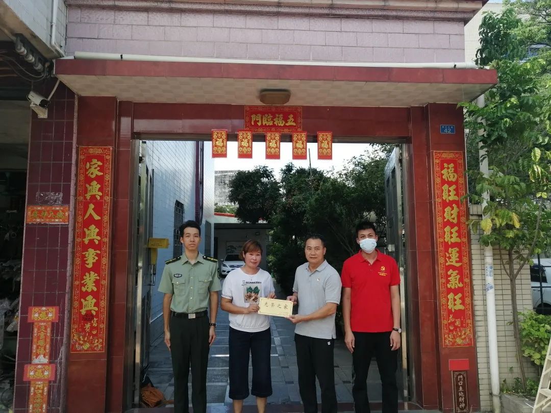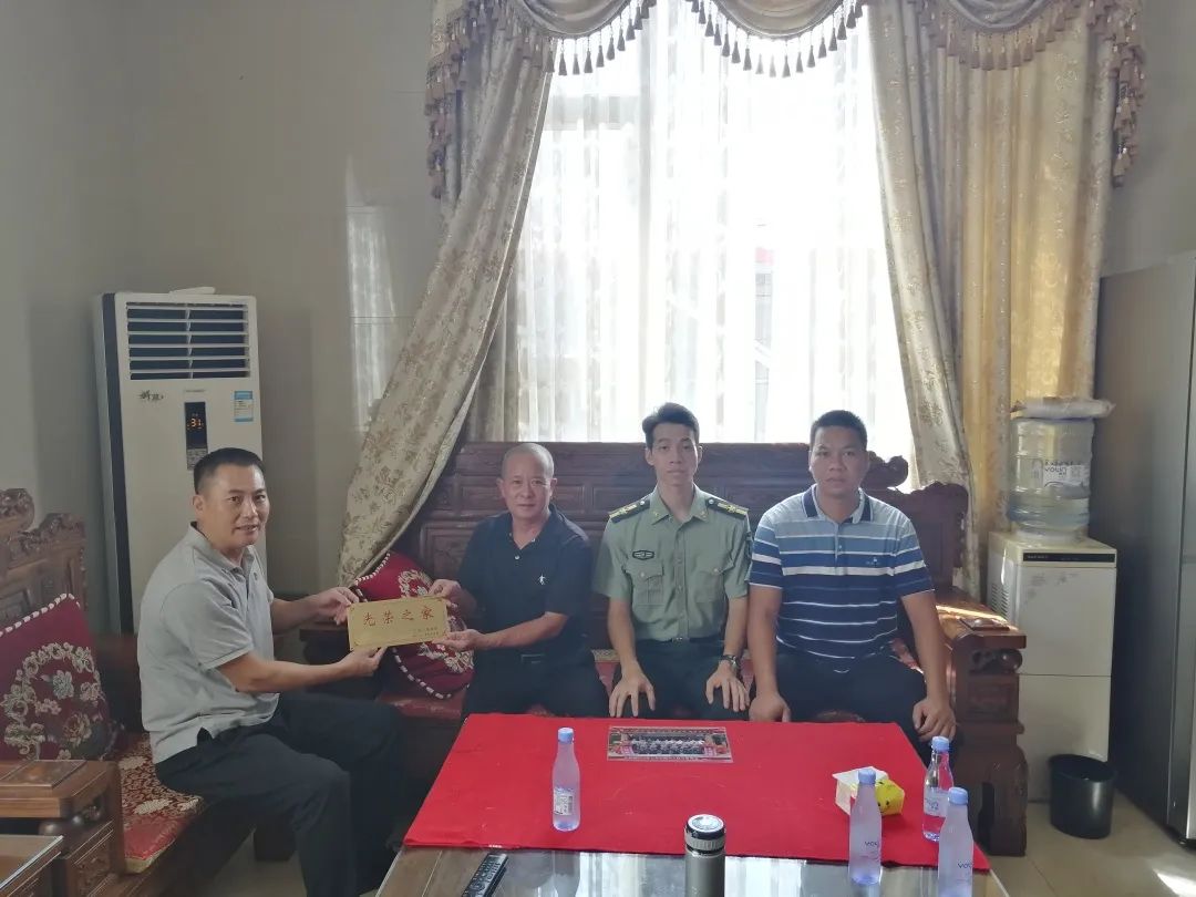 為進一步鞏固和發(fā)展軍政軍民團結(jié),弘揚新時代擁軍優(yōu)屬的優(yōu)良傳統(tǒng),推進軍人榮譽體系建設(shè),營造關(guān)愛軍人的濃厚社會氛圍,7月15日上午,阜沙鎮(zhèn)武裝部、退役軍人服務中心聯(lián)合走訪今年入伍的6名新兵家屬,為其家庭懸掛“光榮之家”門牌,送上入伍電子相冊,了解新兵在部隊的訓練、學習和生活情況,增強軍屬家庭的榮譽感和自豪感,讓他們切實感受到黨和政府的關(guān)愛和溫暖。 在新兵周志偉家中,其父親周錦元自豪地說:“雖然非常舍不得志偉離開我們,但是送他到部隊鍛煉,為國家作貢獻,心里還是很高興的,也非常自豪。今天你們來給我家掛光榮牌、送相冊,我們?nèi)倚睦锱?,非常感謝黨和政府對我們的關(guān)心?!?/p>一人參軍,全家光榮 一塊刻著“光榮之家”的小小牌匾 對軍屬家庭來說卻是一份特殊的“禮物” 牌匾雖小