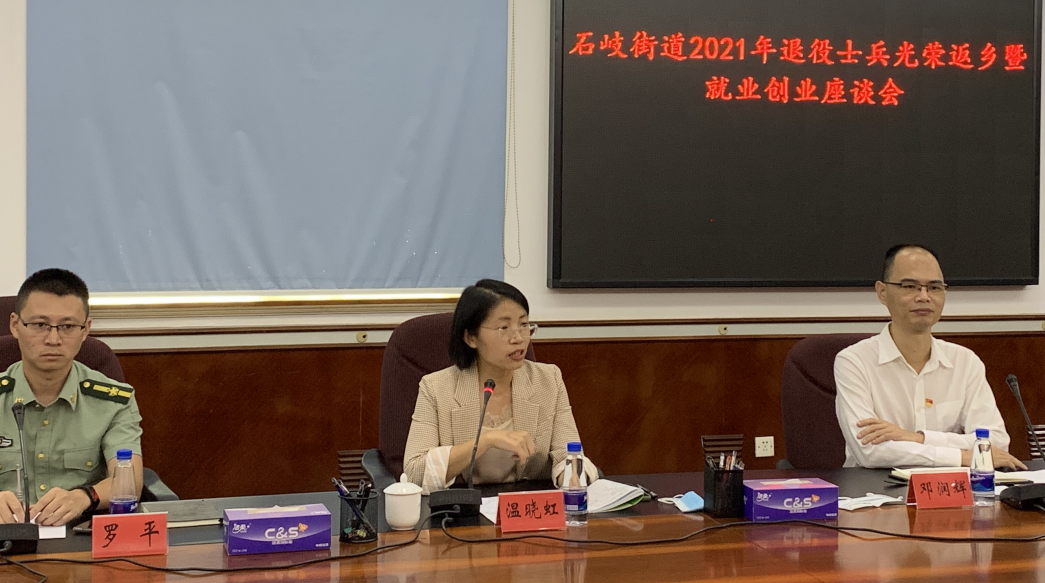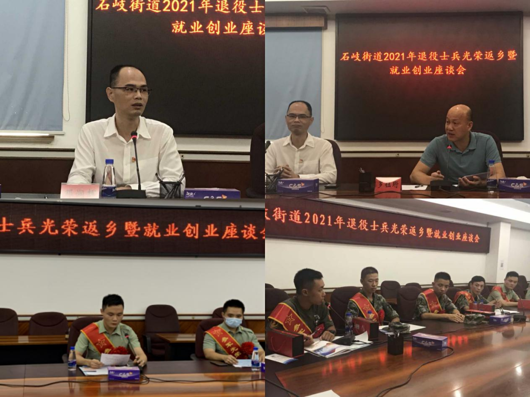 9月24日下午,石岐街道辦事處舉辦“2021年退役士兵光榮返鄉(xiāng)暨就業(yè)創(chuàng)業(yè)座談會”,歡迎今年光榮返鄉(xiāng)的士兵。街道辦事處副主任溫曉虹,公共服務(wù)辦、武裝部、退役軍人服務(wù)中心負(fù)責(zé)人以及今年秋季退役士兵一同參加了座談會。