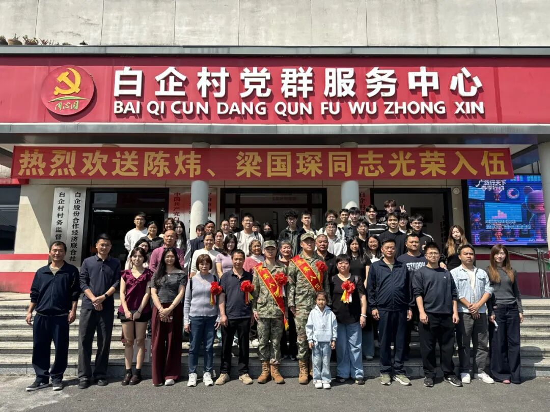 3月12日下午,中山白企村黨群服務中心內(nèi)洋溢著莊重而熱烈的氣氛,2026年度新兵入伍歡送儀式在此隆重舉行。村黨總支書記甘社建率領村“兩委”班子成員及全體工作人員,共同為光榮入伍的陳煒、梁國琛二位同志送行,向投身國防事業(yè)的青年致以崇高敬意,并向支持國防建設的軍屬表達誠摯感謝。