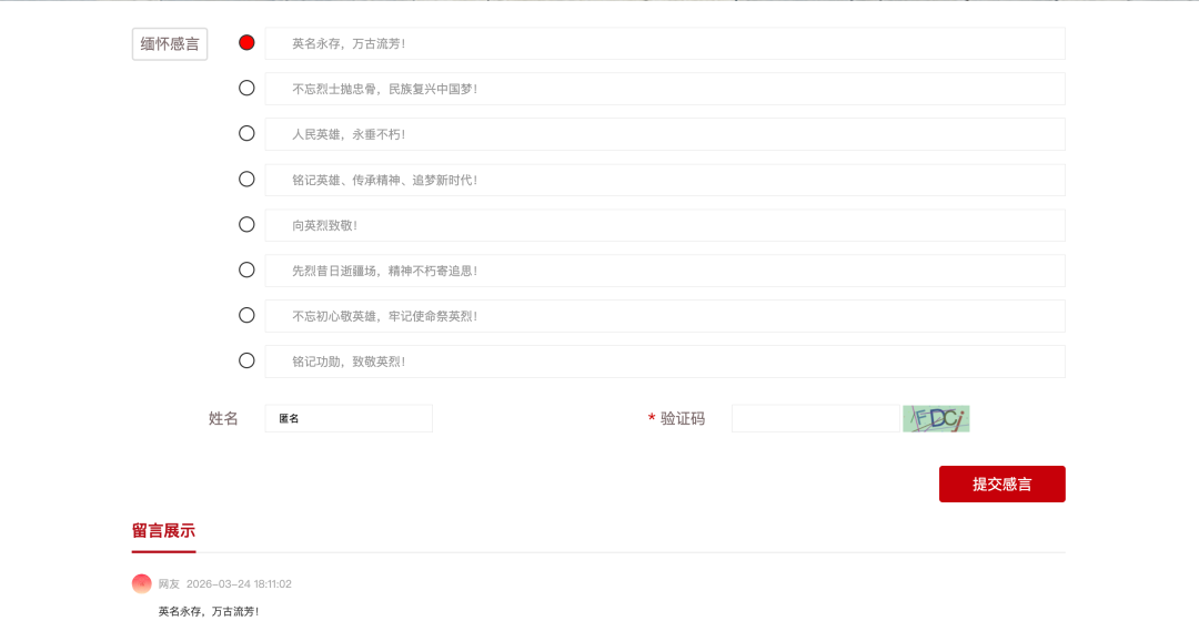 4、烈士名錄中選擇其中一烈士,點(diǎn)擊留言。