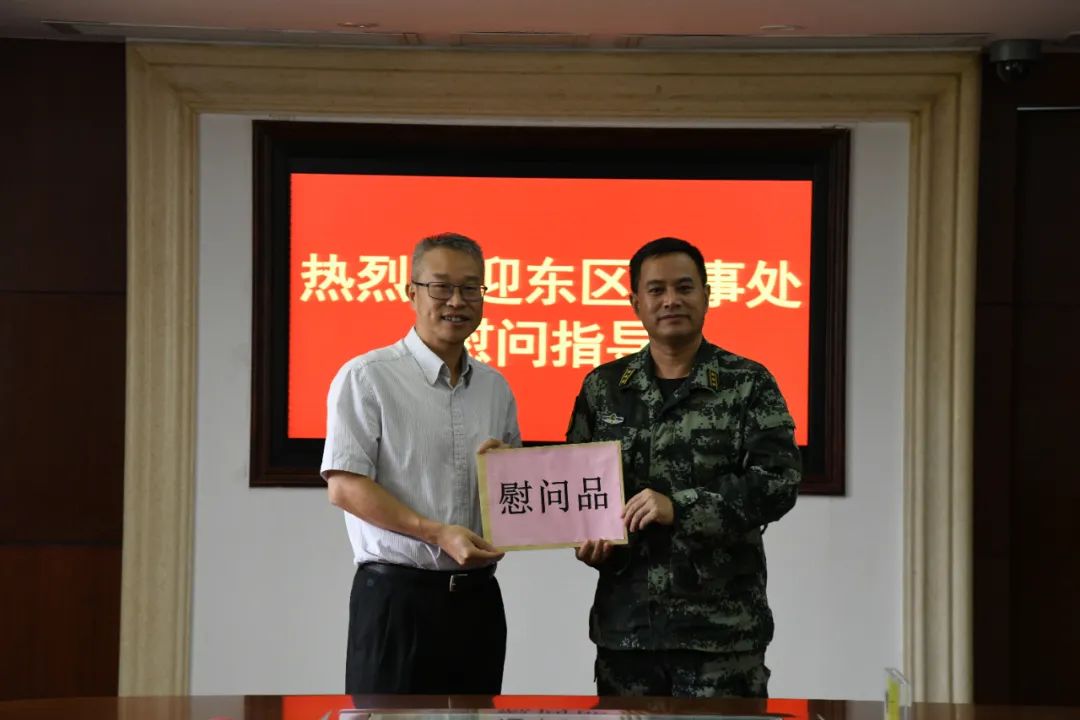 在“八一”建軍節(jié)來臨之際,7月28日上午,東區(qū)黨工委副書記、辦事處主任郭衛(wèi)華,區(qū)黨工委委員王安東一行來到武警中山支隊(duì)開展節(jié)日慰問,向駐地人民子弟兵送去節(jié)日的問候。武警支隊(duì)支隊(duì)長(zhǎng)賈興、政委葉剛盛等支隊(duì)班子領(lǐng)導(dǎo)熱情接待。