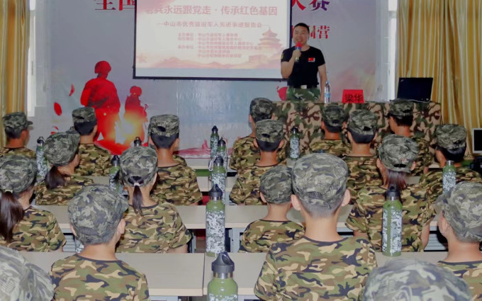 老兵鄭容添表示,老兵宣講團是一個學(xué)習(xí)的平臺,加入宣講團對個人來說是一種義務(wù)與責(zé)任,成員們將不忘初心,牢記使命,為坦洲的國防和青少年成長教育盡一點微薄之力,為坦洲和美發(fā)展講好優(yōu)良傳統(tǒng)和革命故事,激勵青少年健康成長。 “老兵宣講團”各成員在現(xiàn)場分享退役后工作和創(chuàng)業(yè)經(jīng)歷,介紹了開展各類志愿活動的故事。老兵們的好經(jīng)驗、好做法讓大家很受啟發(fā)。 坦洲鎮(zhèn)公共服務(wù)辦公室負(fù)責(zé)人表示,退役軍人為國防和軍隊建設(shè)作出了重要貢獻(xiàn),是社會主義現(xiàn)代化建設(shè)的重要力量,是黨和國家的寶貴財富。組建“老兵宣講團”開展紅色宣講活動意義重大,要結(jié)合在“八一”“國慶”“黨的二十大”等重要時間節(jié)點,有計劃地開展“老兵宣講團”進(jìn)學(xué)校、進(jìn)社區(qū)、進(jìn)農(nóng)村、進(jìn)機關(guān)、進(jìn)企業(yè)等宣講活動,大力弘揚優(yōu)秀退役軍人的先進(jìn)事例,營造崇軍優(yōu)屬的良好社會氛圍,為全鎮(zhèn)經(jīng)濟社會發(fā)展凝聚強大力量。 當(dāng)天下午,“老兵宣講團”成員梁華來到坦洲鎮(zhèn)雛鷹國防教育研學(xué)基地,為開展夏令營軍訓(xùn)的60余名學(xué)生上了一堂生動的愛國主義教育課。梁華結(jié)合自身16年的軍旅生涯向?qū)W生們普及國防教育知識,講述強軍興軍歷史及中國軍人的職責(zé)和使命,讓孩子們近距離感受軍人氣質(zhì)和榮耀,增強他們強國強軍、保家衛(wèi)國的責(zé)任感和使命感。  ▲“老兵宣講團”成員梁華給學(xué)生上國防教育課。