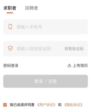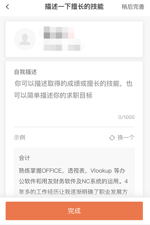 2、注冊(cè)賬號(hào) 未注冊(cè)登陸的求職者將自動(dòng)跳轉(zhuǎn)到注冊(cè)頁(yè)面,完善相關(guān)信息后點(diǎn)擊【完成】按鈕完成注冊(cè)流程。