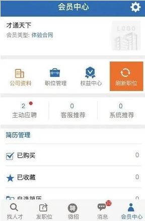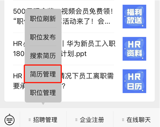 ▲發(fā)布職位流程 3、管理招聘 關(guān)注公眾號(hào)【國(guó)際人才網(wǎng)企業(yè)版】,在【招聘管理】菜單欄找到【簡(jiǎn)歷管理】,即可查看主動(dòng)應(yīng)聘的求職者,并可發(fā)起溝通或邀約面試。
