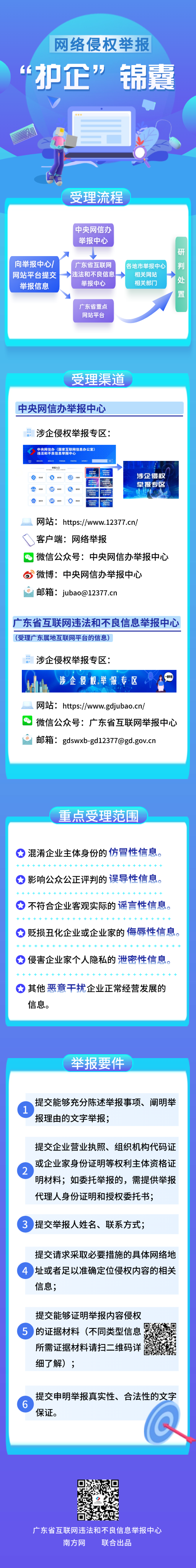 為有效助力企業(yè)維護自身網(wǎng)絡合法權益,廣東省互聯(lián)網(wǎng)違法和不良信息舉報中心精心準備了“護企”錦囊,結(jié)合案例帶大家了解涉企網(wǎng)絡侵權信息的重點受理范圍,請持續(xù)關注并收藏好~