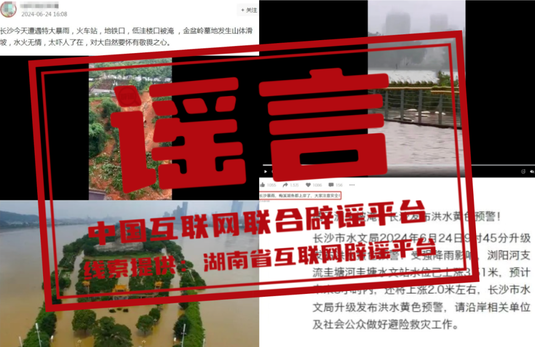 謠 言  長(zhǎng)沙暴雨致橘子洲頭被淹?金盆嶺烈士陵園坍塌?梅溪湖的魚(yú)都上岸了?