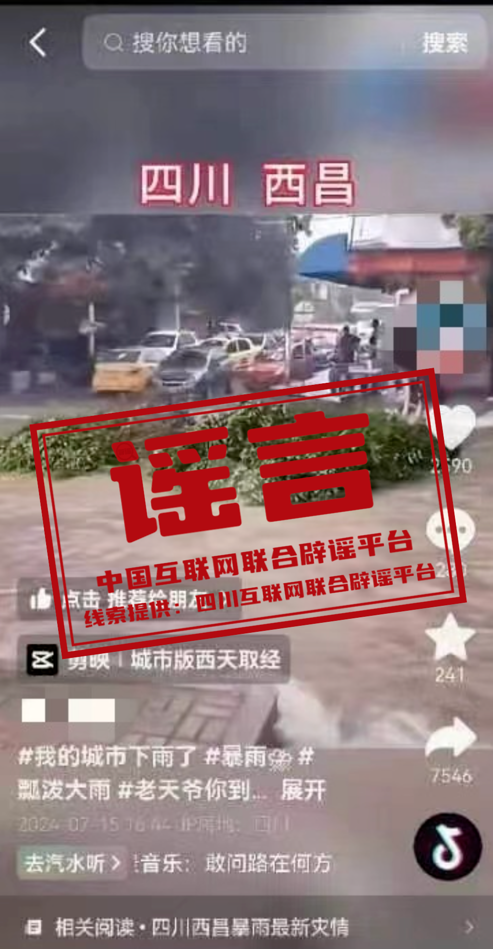 7月21日,有網(wǎng)民在社交平臺發(fā)布圖文稱,雅安市雨城區(qū)的草壩鎮(zhèn)、大興街道等地發(fā)生山洪災(zāi)害,當(dāng)?shù)亟煌ā㈦娏?、通訊中斷,部分房屋被沖毀,田地被淹,并致多人失聯(lián)。經(jīng)核實(shí),兩地并未出現(xiàn)帖文所述情況,圖片中的地點(diǎn)也并非雨城區(qū)草壩鎮(zhèn)、大興街道轄區(qū)。(來源:四川互聯(lián)網(wǎng)舉報(bào)辟謠平臺)