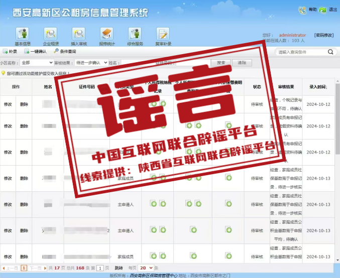 真相:近期,有不法分子偽造西安高新區(qū)公租房信息管理系統審核界面,在網絡上散布公租房資格審核虛假信息,引發(fā)關注。對此,西安高新區(qū)住房和城鄉(xiāng)建設局發(fā)布《關于警惕不法分子偽造虛假信息的聲明》稱,切勿輕信網絡、微信中發(fā)布的高新區(qū)公租房相關政策虛假信息及類似委托代辦信息,以避免個人經濟、財產受到損失。高新區(qū)公租房資格審核全程不代辦、不收費,審核結果均以市級六部門聯審反饋結果為準。同時,任何通過違規(guī)代辦以及提供虛假材料騙取公租房資格的,一經發(fā)現,將嚴肅查處,取消保障資格。(來源:陜西省互聯網聯合辟謠平臺)