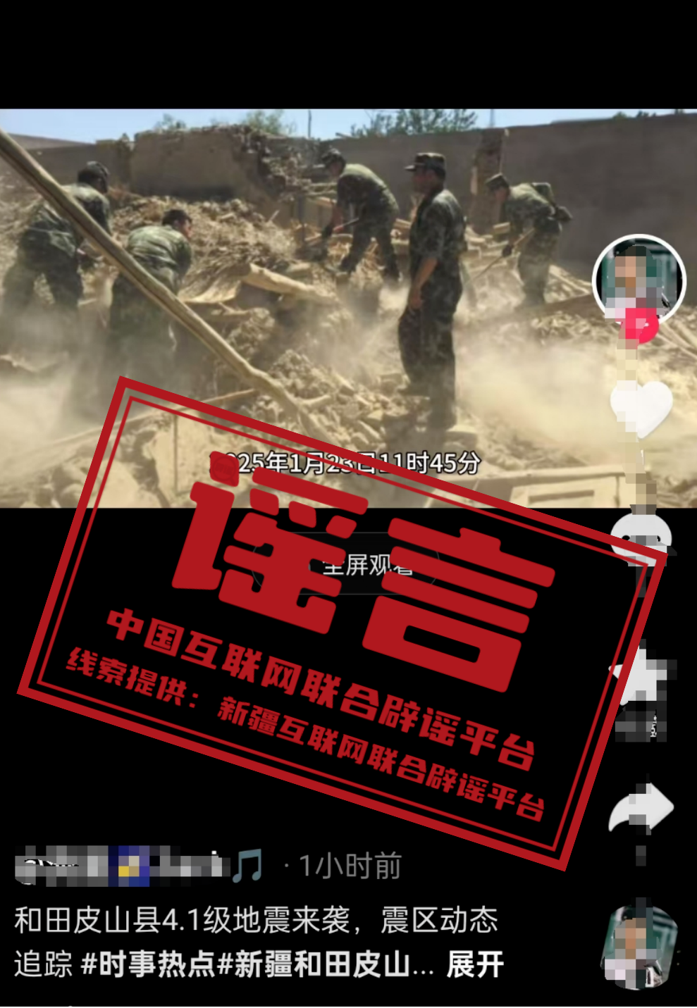 真相:中國(guó)地震臺(tái)網(wǎng)正式測(cè)定,2025年01月23日11時(shí)45分在新疆皮山縣(緯度36.94°,經(jīng)度78.87°)發(fā)生4.1級(jí)地震,震源深度15公里,震中附近地形類(lèi)型為山地,5公里范圍內(nèi)平均海拔高度為2484米,距離皮山縣92公里。個(gè)別網(wǎng)民關(guān)聯(lián)此次地震,發(fā)布“房屋倒塌、道路坍塌及應(yīng)急救援”等謠言圖片和短視頻,博取流量誤導(dǎo)網(wǎng)民。經(jīng)皮山縣應(yīng)急管理局核實(shí),此次地震未造成人員傷亡及財(cái)產(chǎn)損失。對(duì)編造散布地震謠言擾亂公共秩序、造成惡劣社會(huì)影響的行為,公安機(jī)關(guān)將依法依規(guī)嚴(yán)肅查處。請(qǐng)廣大網(wǎng)民擦亮眼睛,勿輕信傳播非正規(guī)來(lái)源、未經(jīng)證實(shí)的地震信息。(來(lái)源:新疆網(wǎng)絡(luò)辟謠)