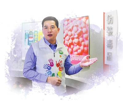 ▲3月31日,中山市禁毒志愿者總隊隊長陳克誠在中山市禁毒教育基地開展志愿服務。