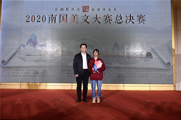 一城誦讀,全域共享!12月20日下午, 2020南國美文大賽總決賽在中山金鉆酒店舉行。經(jīng)過激烈的角逐,最終,中山市東區(qū)遠(yuǎn)洋學(xué)校初三學(xué)生徐樂瑤的作品《烏斯懷亞有點冷》獲得2020南國美文大賽冠軍,中共中山市委常委、宣傳部長林銳熙出席總決賽并為冠軍作者徐樂瑤頒獎。